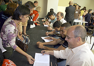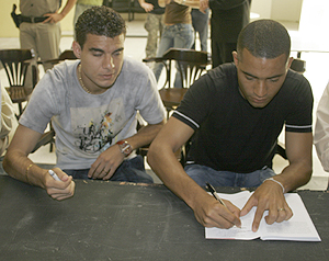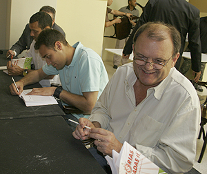 Abel Braga (E) e Iarley participaram da sessão de autográfos