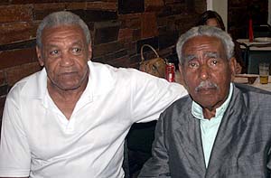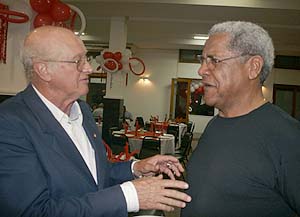 Elton (E) e o ex-jogador e técnico Walmir Loruz conversam durante o evento