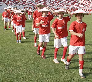 Crianças coloradas ostentaram chapéus japoneses (Daniel Boucinha)