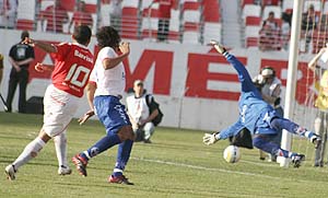 Aos 14min5seg, Iarley recebeu na ára, driblou o zagueiro e chutou na rede pelo lado de fora, quase marcando o gol. Aos 15min45seg, o zagueiro Índio passou errado na área e Finazzi por pouco não abriu o placar. Aos 18min15seg, Iarley recebeu na área e tocou para Alex chutar e a zaga salvar em cima da linha, mas o juiz anulou o lance por impedimento.
