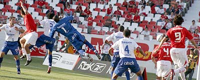Aos 8min15seg, Rubens Cardoso cruzou para Léo ajeitar de cabeça para Édson Bastos salvar com um tapa. No rebote, Fabiano Eller chutou de voleio por cima. Aos 9min, Fernandão recebeu na área e quando iria chutar, foi solado por um zagueiro. O juiz equivocadamente não marcou nada no lance.