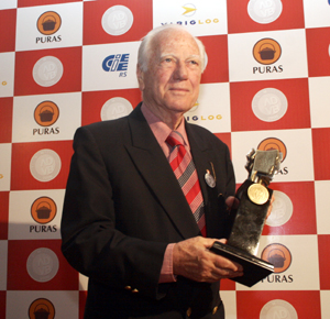 Da esq. para dir.: diretor-presidente da e-21, Luciano Vignoli, Otavio Rojas, secretário Municipal de Esportes, Recreação e Lazer, João Bosco Vaz, e Arthur Dallegrave durante a entrega do prêmio