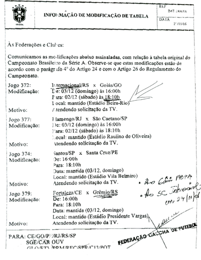 BRASILEIRÃO: JOGO CONTRA O GOIÁS É ANTECIPADO PARA SÁBADO