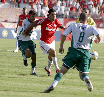 Antes da violência, porém, o Inter começou melhor. Aos 5min15seg, Alex roubou a bola na intermediária e avançou até a entrada da área chutando por cima. Aos 15min15seg, Iarley pegou a bola na linha de fundo, passou por dois, entrou na área e chutou no corpo do zagueiro. Aos 19min, Hidalgo tabelou com Alex e cruzou para Fernandão, mas a zaga saolvou de cabeça.
