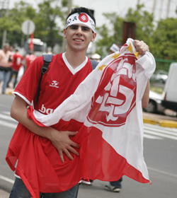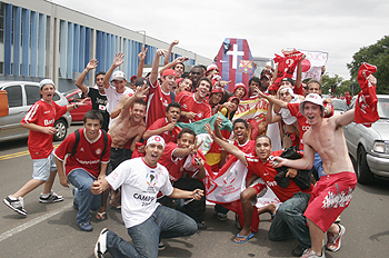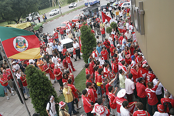 A mobilização da torcida começou cedo nesta terça-feira. Duas horas antes do embarque, cerca de 200 torcedores se concentraram em frente ao hotel onde e delegação almoçou antes de rumar para o aeroporto. Os fiéis colorados não mediram esforços para incentivar o grupo que partiu para o Japão e gritaram um por um os nomes dos jogadores. O hino do clube também foi cantando intensamente pela massa vermelha.
