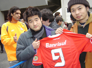 Torcedores japoneses exibem a camisa de Fernandão (Bruno Junqueira)