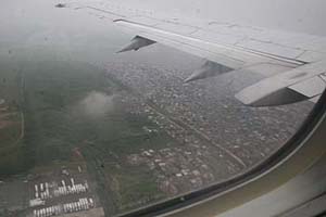 Avião sobrevoa Guarulhos-SP, na primeira escala da torcida colorada