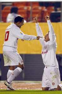 Aos 22min45seg, o gol colorado. Fernandão deu ótimo passe para Alexandre Pato, que matou na entrada da área, mas o zagueiro afastou. Na seqüência, a bola ficou dividida entre Alex e um zagueiro africano, que tentou afastar a bola e acabou dando o passe para Alexandre, livre. O garoto de apenas 17 anos matou a bola e chutou no canto: sem defesa.