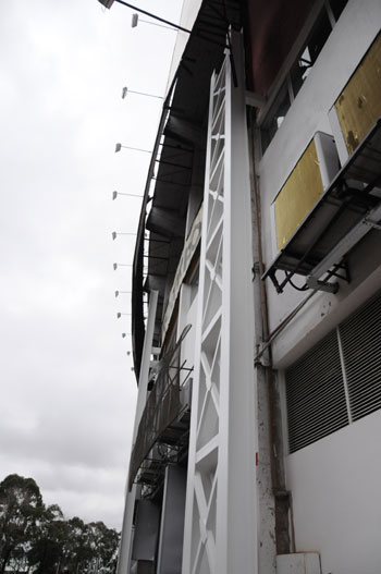 Visando ampliar o conforto para os mais de 100 mil sócios do Internacional, as obras para a cobertura do estádio Beira-Rio já tiveram seu início. Ao todo, já são cinco pilares de sustentação da estrutura que cobrirá todo o Estádio em sua totalidade. É o Projeto Gigante Para Sempre que começa a tomar forma.