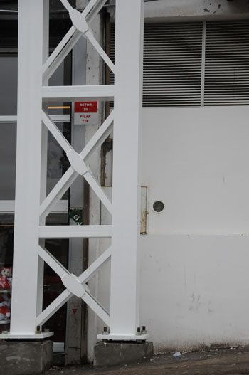 Cinco pilares foram construídos em frente à loja do Inter e ao futuro museu