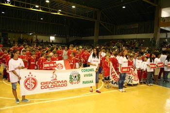 Dois jogos abriram a I Taça Brasil de Futebol do Projeto Genoma Colorado, na manhã desta terça-feira (12/12), pela categoria juvenil, que está acontecendo em Coronel Vivida, sudoeste do Paraná. As partidas foram realizadas no Complexo Esportivo Barro Preto, com o empate em 0 a 0 entre os núcleos de Coronel Vivida e Novo Hamburgo (RS) e a vitória por 1 a 0 do Itapiranga (SC) contra Guarulhos (SP). A abertura oficial do evento aconteceu na noite de segunda-feira (11/12), no ginásio do complexo, com o desfile das delegações do Paraná (Coronel Vivida, Pato Branco e Matelândia), Santa Catarina (Itapiranga e Xanxerê), São Paulo (Atibaia e Guarulhos) e Rio Grande do Sul (Viamão e Novo Hamburgo). O núcleo de Brasília (DF) teve problemas durante a viagem e acabou chegando depois do horário previsto. A final da competição será na próxima quinta-feira (14), aniversário de 51 anos de emancipação político-administrativa de Coronel Vivida.