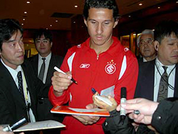 Fabiano Eller concede autógrafo a la llegada a Yokohama (Allen Chahad/Terra)