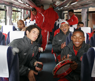 Antes de la recepción festiva, el equipo tuvo un viaje tranquilo hasta Yokohama, donde está ahora en el Hotel Sheraton Bay. La delegación partió de Tokio alrededor de 13h con un clima de mucha alegría y tranquilidad. Durante el trayecto, el sonido más oído dentro del autobús fue el ?pagode? y samba cantados por las voces de Perdigão, Clemer, Ediglê e Iarley, bajo el ritmo de la pandereta de Luiz Adriano, autor del gol de la victoria sobre el Al-Ahly.