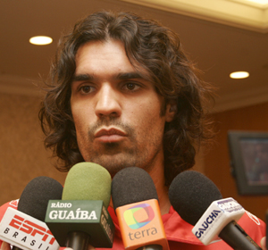 Apesar de a entrevista ter tradução simultânea a todos presentes, uma repórter da rede de televisão ESPN pediu a Fernandão responder em espanhol em determinado momento da entrevista. O pedido foi atendido pelo capitão colorado com bom humor. ?Só consigo em portunhol?, disse, arrancando risadas de alguns jornalistas. ?A gente está vestindo a camisa da nossa seleção, que é o Inter. E vamos enfrentar um time que é melhor que muitas seleções que disputaram a última Copa do Mundo. Ninguém é louco de dizer que o Inter é o favorito. O Barcelona é favorito contra qualquer time do mundo. Mas o favorito nunca vence fora do campo. Vai ter que provar dentro do gramado?, analisou o meia-atacante.