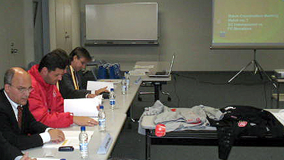 Sentados todos em uma mesa em forma de U, os representantes dos dois times ficaram frente a frente separados por uma distância de aproximadamente 8 metros, enquanto os da Fifa ficavam no centro podendo se dirigir aos dois times.