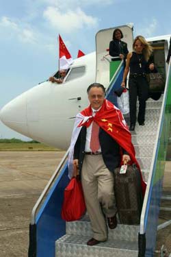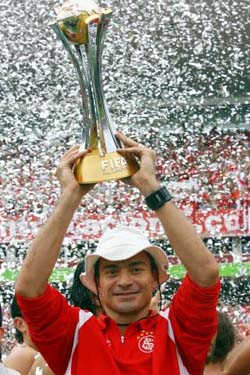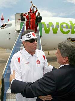 O técnico Abel Braga desceu do avião com uma faixa na cabeça que trazia ideogramas japoneses. Cercado por dezenas de jornalistas, o treinador colorado festejou o retorno ao Brasil: "É muito bom estar de volta a Porto Alegre. Ainda mais depois de uma jornada vitoriosa no Japão", comemorou.