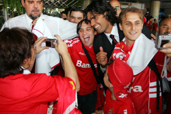 Fernandão dá atenção aos colorados que receberam delegação no aeroporto