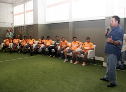 Vice-presidente de futebol, Giovanni Luigi, fala aos jogadores