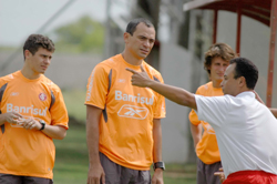 Abel Braga orienta os jogadores para o trabalho na cancha de areia