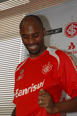 O Internacional apresentou o centroavante Christian (foto), na manhã desta sexta-feira, no Beira-Rio. O jogador, de 31 anos, desembarcou às 11h15min, no aeroporto Salgado Filho, em Porto Alegre. Depois foi levado ao estádio Beira-Rio, onde realizou exames médicos, assinou contrato por dois anos e a direção apresentou a nova contratação oficialmente para a imprensa e torcida colorada. "Não consegui encontrar uma palavra certa para falar tudo o que eu sinto neste momento, de estar aqui de novo, de vestir essa camisa. Eu tinha dois sonhos para realizar, o primeiro era voltar ao Inter, o segundo vocês (imprensa) saberão depois", disse Christian, certamente se referindo aos títulos que pretende conquistar.