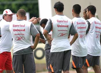 Técnico Abel Braga orienta jogadores em treino, visando a estréia