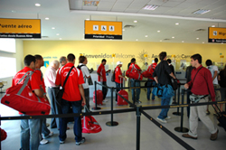 Delegação chega ao aeroporto de Montevidéu depois de viagem tranqüila