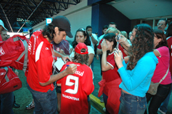 Ídolo: Fernandão dá autógrafos torcedores no aeroporto Salgado Filho em Porto Alegre