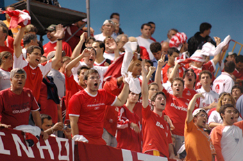 Todos nos seus lugares, a torcida passou a cantar o tradicional ?Colorado, colorado, nada vai nos separar? com palmas ditando o ritmo. Os torcedores gaúchos conseguiam fazer mais barulho que os do Nacional.