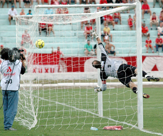 Falta cobrada por Ceará acerta o ângulo do goleiro Gilmar