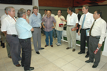 Na parte final da visita, a delegação foi até as cabines de administração do estádio, onde pôde conferir o sistema de câmeras que vigia os torcedores, bem como a sala de controle do placar eletrônico e do som. Depois disso, se reuniu com os dirigentes colorados para passar algumas recomendações. Para encerrar, concedeu uma entrevista coletiva para os jornalistas gaúchos. ?É um lindo estádio com um gramado maravilhoso. Quando as pessoas vêm para o Beira-Rio, elas devem vir felizes. Todo o complexo Beira-Rio é muito bonito. O contraste do vermelho do estádio com o verde da grama é lindo?, elogiou Gagg.