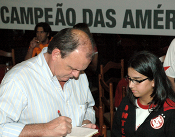 Vitorio Piffero concede autógrafo durante evento consular: Inter foi recebido com carinho em Vacaria
