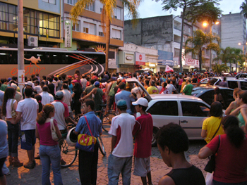 Como vem se tornando praxe, o nome mais gritado foi de Alexandre Pato, que parece ter se tornado um ídolo principalmente dos adolescentes. "Pato, cadê você, eu vim aqui só pra te ver" ou "Pato, eu te amo", cantavam as meninas. Foi preciso que os jogadores aparecessem nas janelas do hotel localizado no centro da histórica Bagé para acenar aos torcedores, ansiosos pelos campeões do mundo. Há 23 anos, o time principal do Inter não vinha a Bagé para uma partida oficial. A chegada colorada contou também com uma carreata que acompanhou o ônibus da entrada da cidade até o hotel. Pelas ruas que o veículo passou, centenas de pessoas saíram das suas casas para acenar e tirar fotos.