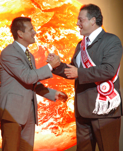 A cerimônia teve início com a apresentação da placa de inauguração do Centro de Eventos Beira-Rio. O presidente Vitorio Piffero juntamente com o ex-presidente Fernando Carvalho descerraram a placa. ?Isso representa a conclusão e entrega de uma grande e moderna obra que começou na gestão passada?, disse Piffero.