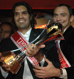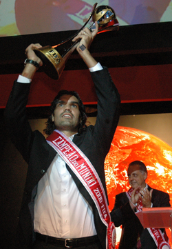Fernandão (E) e Clemer (D) erguem a taça do Mundial na festa de 98 anos