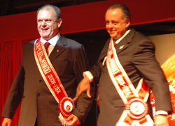 O técnico da Seleção brasileira Dunga colocou as faixas no treinador colorado Abel Braga e em Anderson Paixão, que foi representando seu pai, o preparador físico Paulo Paixão.