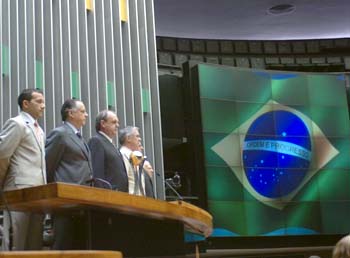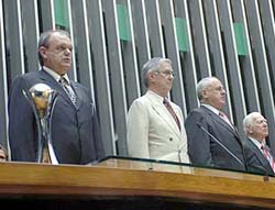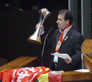 A Câmara dos Deputados, em Brasília, realizou na tarde da última sexta-feira (13/04) a sessão solene para homenagear o Sport Club Internacional pela conquista do Campeonato Mundial Interclubes de Futebol de 2006. Requerida pelo deputado Pompeo de Mattos (PDT-RS), a sessão foi presidida pelo deputado Ibsen Pinheiro (PMDB-RS), ex-dirigente do clube.