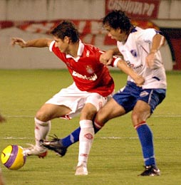 Os uruguaios, por sua vez, estavam dispostos a jogar bem fechadinhos com duas linhas de quatro jogadores, formando um grande bloqueio para os avanços colorados. Na frente, Castro e Martinez tentavam puxar os contra-ataques, que foram controlados pelo Inter.