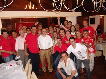 Ex-presidentes Arthur Dallegrave (E) e Fernando Carvalho (C), dentre outros dirigentes colorados, participaram do último encontro