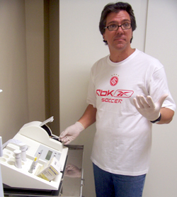 O processo é simples. Após um treino ou uma partida, uma gota de sangue é retirada dos jogadores e logo em seguida colocada em uma fita reagente. A fita é inserida em um compartimento do aparelho. Após três minutos, o Reflotron mensura uma série de parâmetros como ácido úrico, glicose, creatinina potássio, hemoglobina, triglicerídeo, amilase, etc, presentes na amostra. Os índices são impressos em uma espécie de extrato bancário, possibilitando que o médico faça as interpretações sobre o nível de desgaste sofrido pelo atleta durante a realização do esforço. ?Pelo aparelho temos condições de monitorar como os jogadores estão reagindo à carga de treinos. Dessa maneira, podemos controlar e direcionar da maneira mais adequada possível as atividades, evitando até mesmo a incidência de lesões?, explica o médico do Inter, Luiz Crescente.
