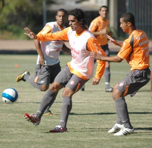 Pela tarde, Gallo realizou um treino com bola em campo reduzido e logo depois promoveu mais uma bateria de exercícios de finalização. Enquanto isso, no outro lado do campo, Manuel Faleiro, Valdir Benedito e Maurício Copertino trabalhavam com os jogadores do setor defensivo alçando bolas para a área que eram afastadas de cabeça.