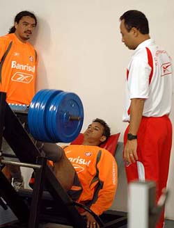 Na manhã desta quarta-feira, os jogadores ficaram treinando por cerca de 2 horas e meia a parte física. O começo foi em uma academia da cidade, onde realizaram exercícios em circuito que trabalha vários grupos musculares ao mesmo tempo. Este tipo de treinamento criado nos anos 50 é um dos mais clássicos da preparação física. Permite que se trabalhe com vários jogadores ao mesmo tempo em um sala ou ginásio. Praticamente todos os grupos musculares são estimulados neste tipo de sessão de treinamento.