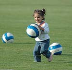 - Enquanto os jogadores aqueciam para o treino, a pequena Antônia, filha do goleiro Donizete, do Esportivo, alegrou o grupo ao brincar com algumas bolas que estavam na beira do campo.