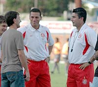 - Antes do treinamento, o técnico Gallo recebeu a visita do meia Caio, do Esportivo. Os dois jogaram juntos na Portuguesa em 1996, quando o time paulista ficou com o vice-campeonato brasileiro.