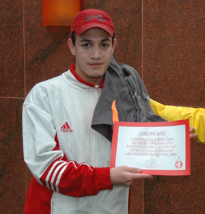 Carlos Alberto dos Reis ganhou o agasalho de treino utilizado pelo Inter no Japão