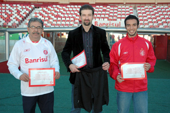 Os prêmios foram entregues no gramado principal do Beira-Rio pelo diretor de relacionamento com os sócios, João Machado, momentos antes da partida Inter x Botafogo.