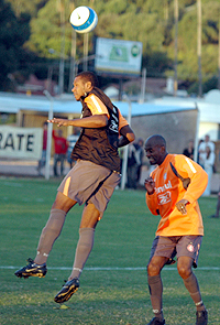 Sidnei (E) afasta a bola: treino simulou situações de jogo