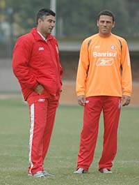 Gallo (E) ao lado do auxiliar técnico Maurício Copertino: Inter apresentou evolução tática contra o Atlético-PR