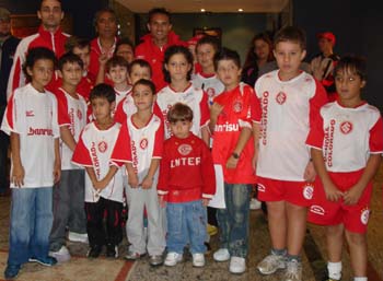 Um grupo com cerca de 30 crianças que participam do projeto Genoma Colorado em Curitiba esteve no hotel da delegação do Inter no início da tarde deste sábado. Acompanhadas pelo coordenador do Núcleo Curitiba do Genoma, Jean Pierre, os pequenos colorados aguardavam no saguão do hotel a aparição dos seus ídolos. Para alegria geral, o meia-atacante Márcio Mossoró foi até onde se encontravam as crianças e atendeu uma a uma.