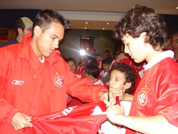 Os meninos e meninas estavam fardados com o uniforme do Genoma local e fizeram até fila para serem recebidos por Mossoró. É claro, os marmanjos colorados que também estavam ali foram atendidos e levaram pra casa as recordações do meia do Inter, como fotografias e autógrafos em camisetas, bonés, bandeiras. As crianças provaram com um sorriso estampado no rosto que ganharam um grande presente no final de semana em que o Inter, time campeão do mundo, foi a Curitiba buscar a primeira vitória no Brasileirão.