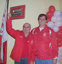 Já na sua chegada, a comitiva colorada foi recepcionada com muitos fogos de artifício e carreata, aquecendo a noite fria e chuvosa na região. Entrando no pavilhão, aos gritos de ?vamos, vamos, Inter? e com o hino do clube campeão do mundo tocando ao fundo, os atletas profissionais Muriel e Ramon deram uma espécie de volta olímpica com as taças do Mundial Fifa e da Libertadores da América. Um momento mágico para todos os presentes, que puderam tirar fotos com os troféus.